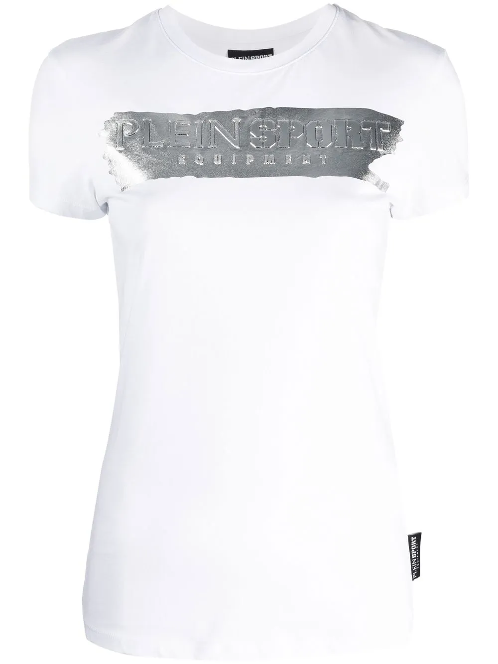 Plein Sport t-shirt métallisé à logo imprimé – Blanc