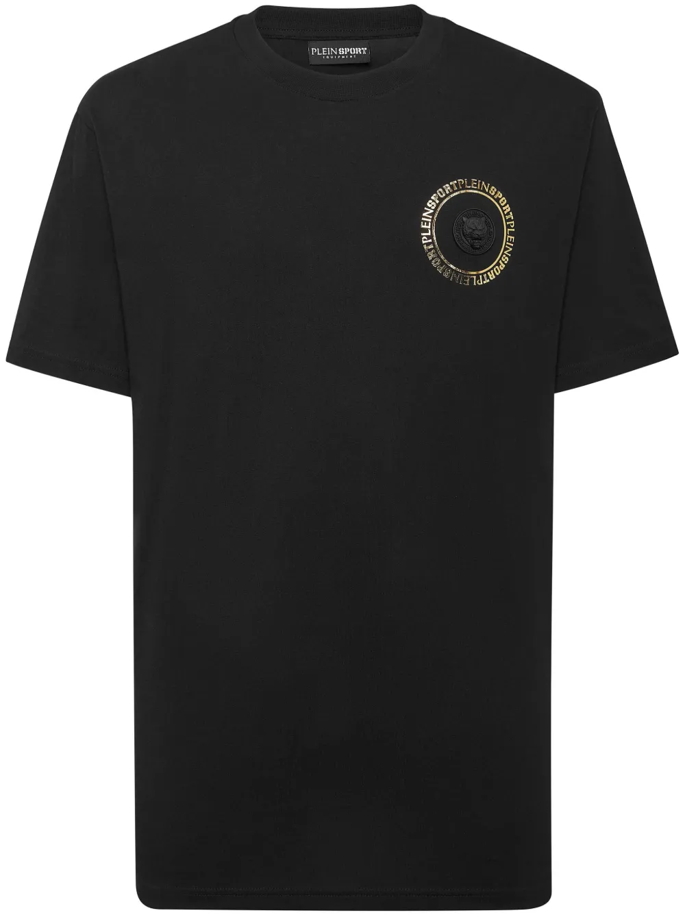 noir coton col rond logo imprimé sur la poitrine manches courtes ourlet droit patch logo intérieur