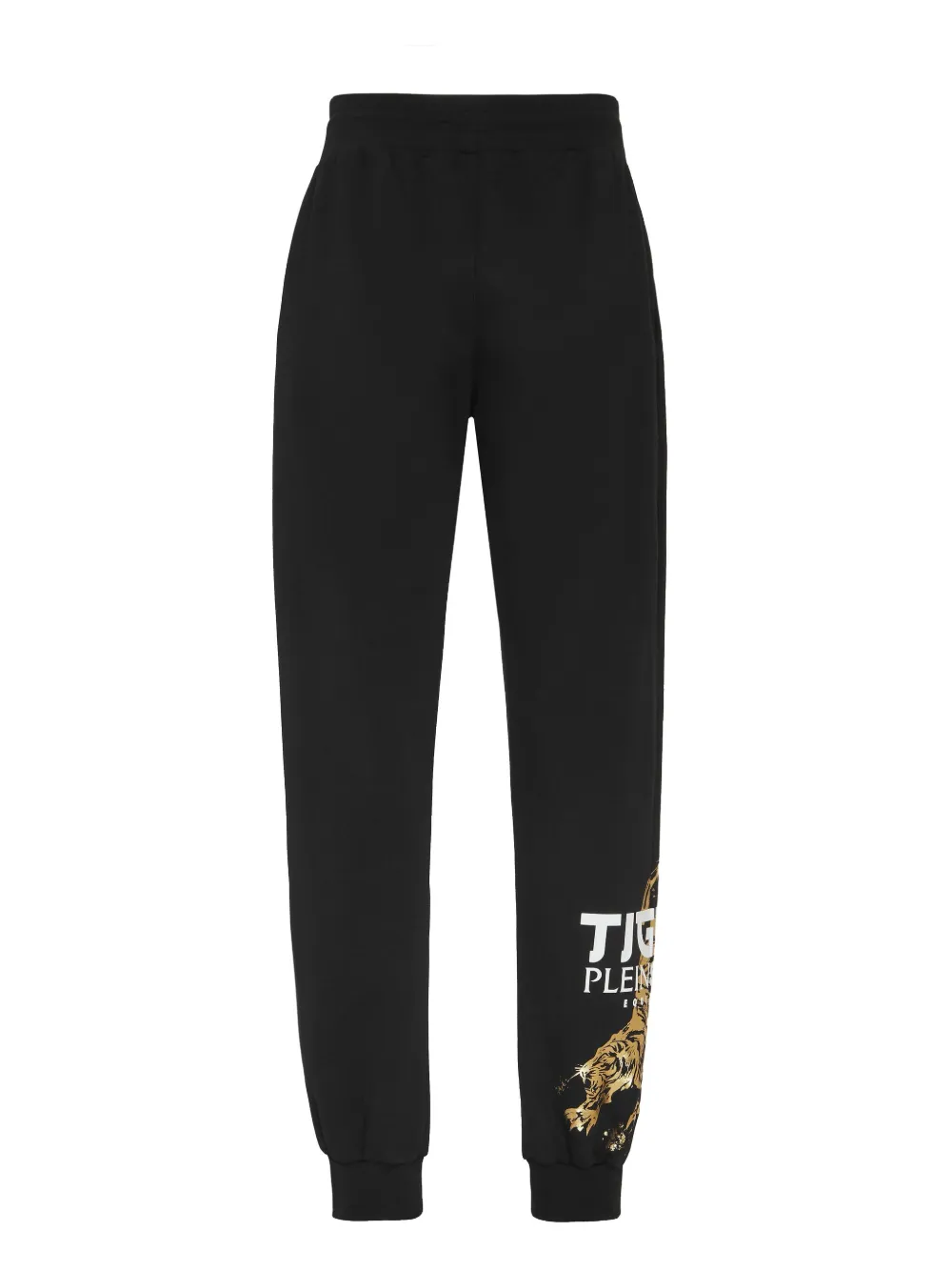 zwart elastische tailleband met trekkoord logoprint op de pijpen elastische enkels