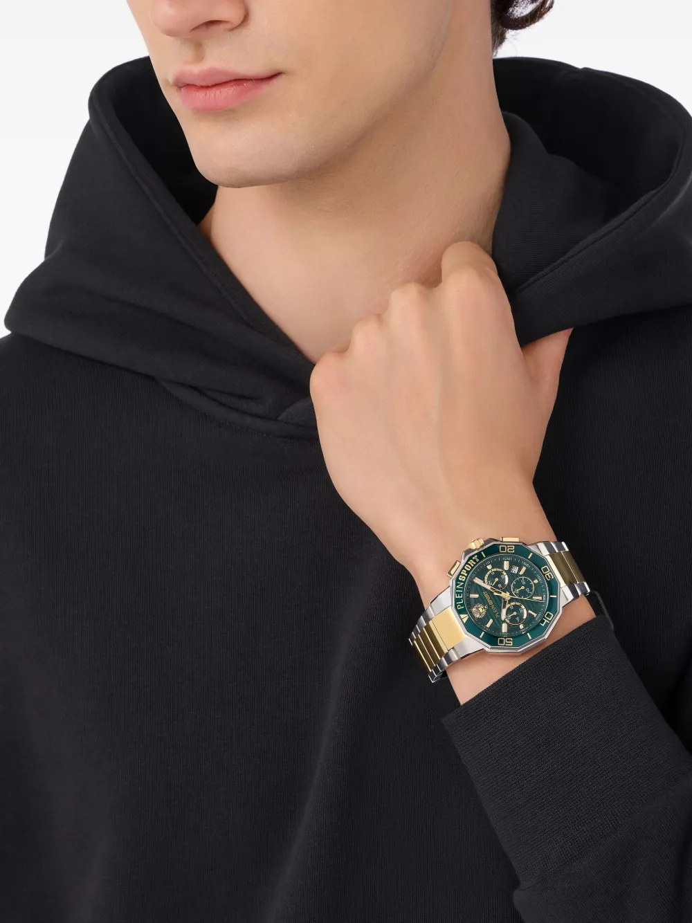 46mm groen tweekleurig design guilloché wijzerplaat geometrisch montuur stopwatchfunctie waterdichtheid tot 50 m/5 ATM quartz uurwerk klikbare gespsluiting