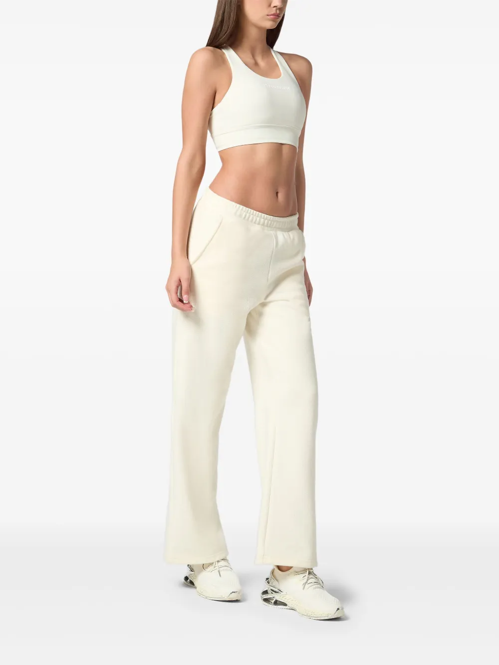 wit elastische tailleband twee steekzakken aan de zijkant badstof-effect rechte pijpen