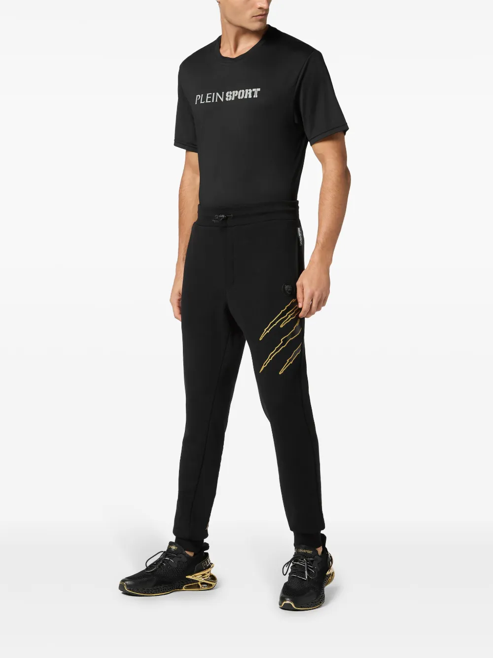 zwart elastische tailleband met trekkoord twee steekzakken aan de zijkant geribbelde enkels