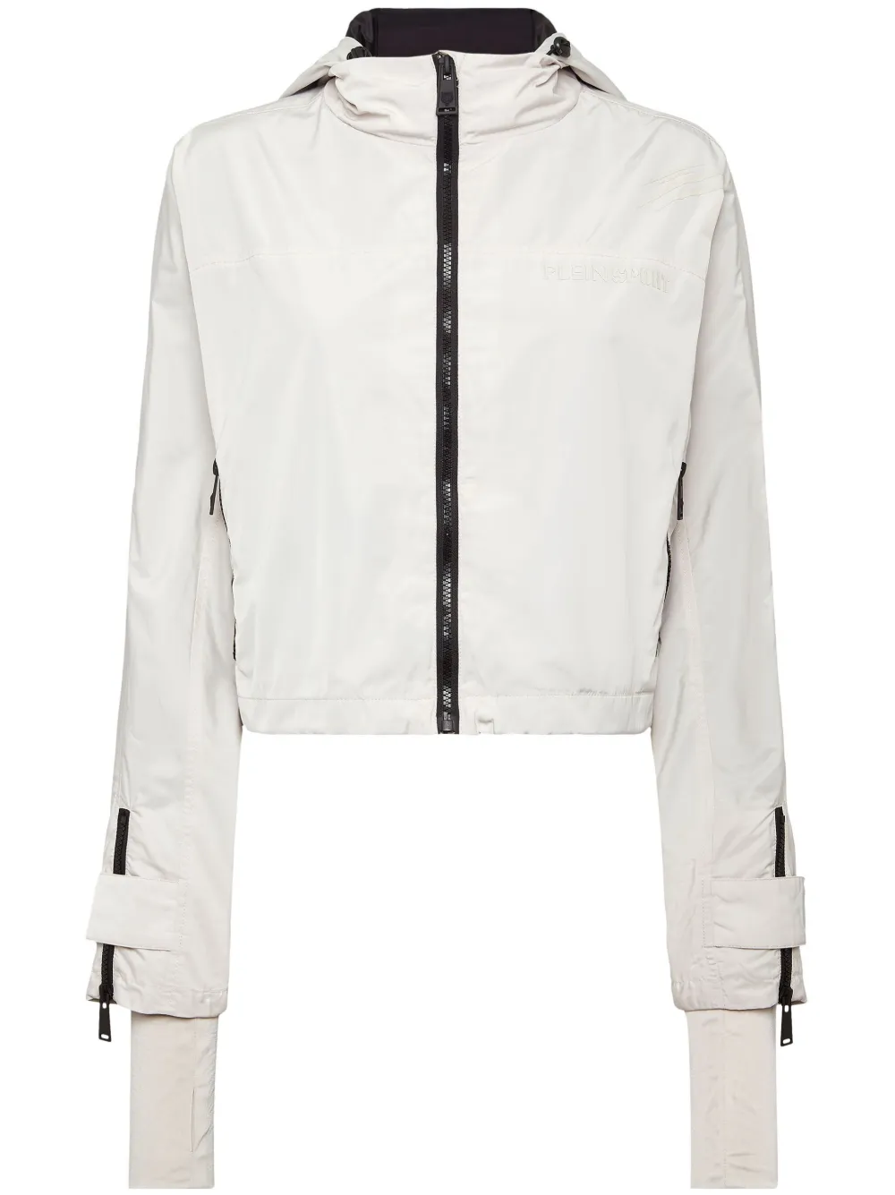 gris clair fermeture zippée devant deux poches latérales zippées poignets zippés appliqué logo
