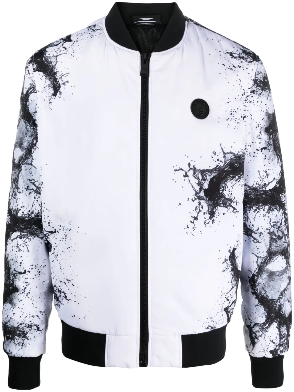 Patch poitrine à logo, logo imprimé à l’arrière, bords contrastants, col style baseball, fermeture zippée devant, manches longues, manches à poignets resserrés.
