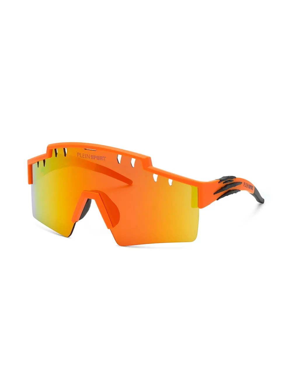 oranje uitgesneden detail shield montuur gekleurde glazen rechte pootjes Deze bril wordt verkocht met een beschermhoes.