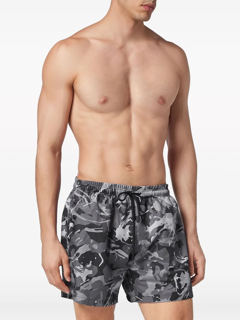 Zwart, beluga grijs, camouflageprint, elastische tailleband met trekkoord, twee steekzijzakken en dijlengte. Zwemkleding moet over je eigen kleding worden aangepast..