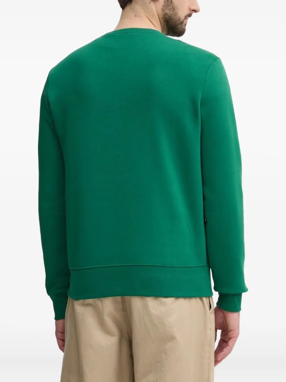 smaragdgroen Polo Sport-logo ronde hals lange mouwen geribbelde manchetten