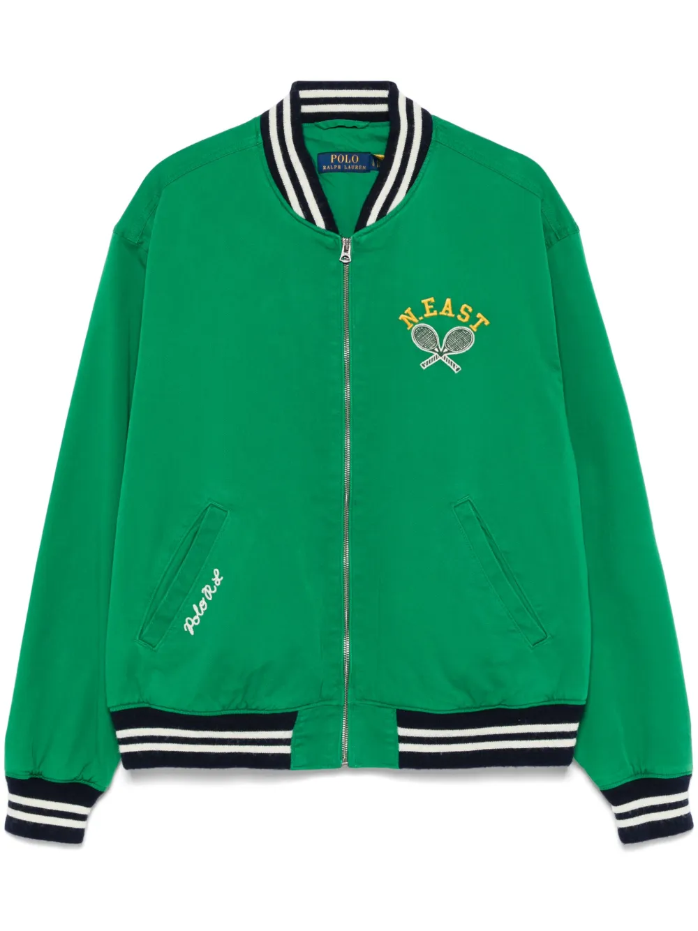 vert gazon fermeture zippée devant deux poches latérales passepoilées motif brodé bordure rayée
