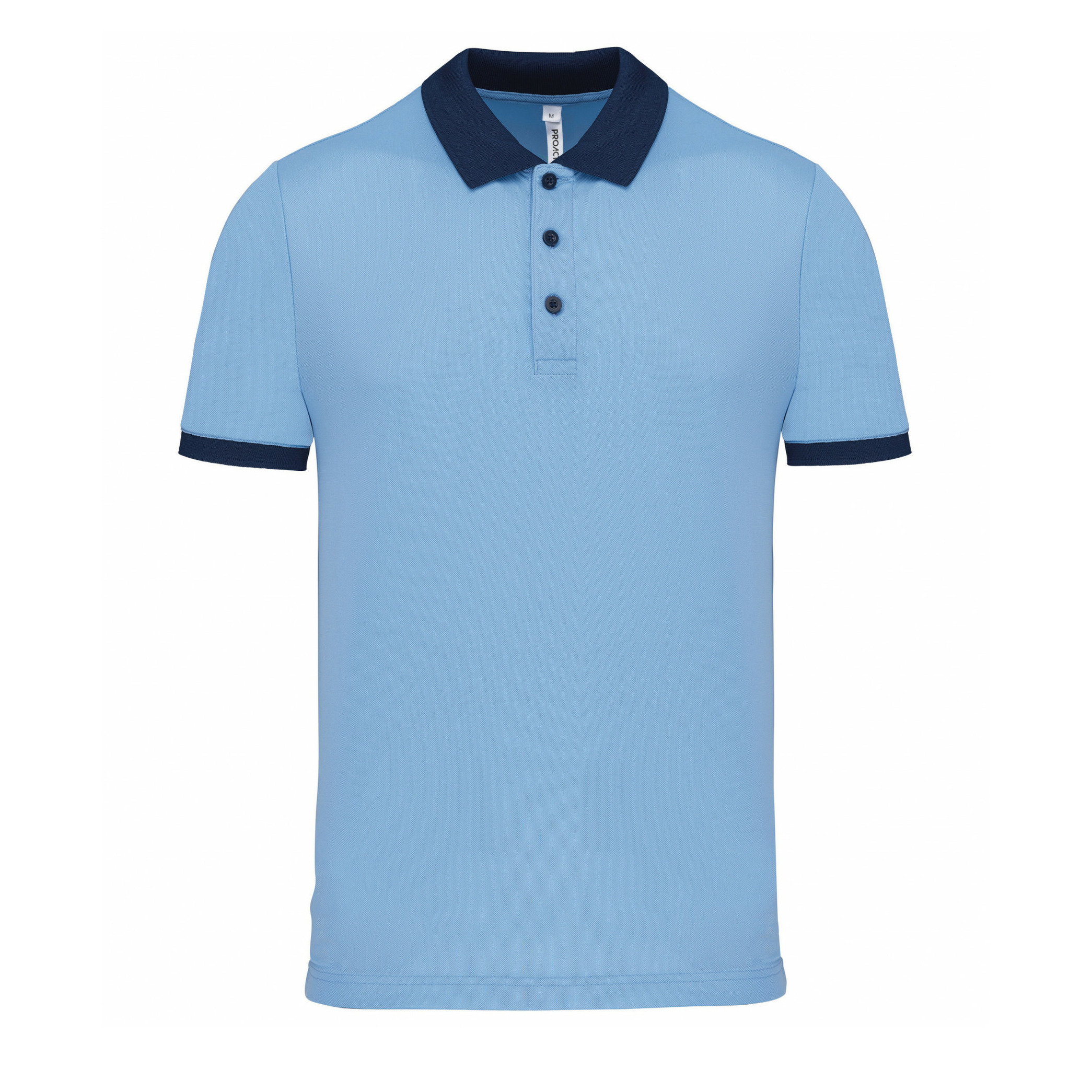 Heren poloshirt Sport Pro premium in de kleuren lichtblauw/navy. Dit poloshirt is gemaakt van 100% interlock polyester stof en is heel sterk, licht en ademend. Het shirt heeft een premium topkwaliteit en een contrasterende kleur op de kraag en mouwen. 3-Knoops sluiting in de kraag. Merk: Proact. Kwaliteit: 180 grams. High quality poloshirt voor op uw werk, sport of vrije tijds kleding. Blijft bijzonder goed in vorm na diverse wasbeurten.