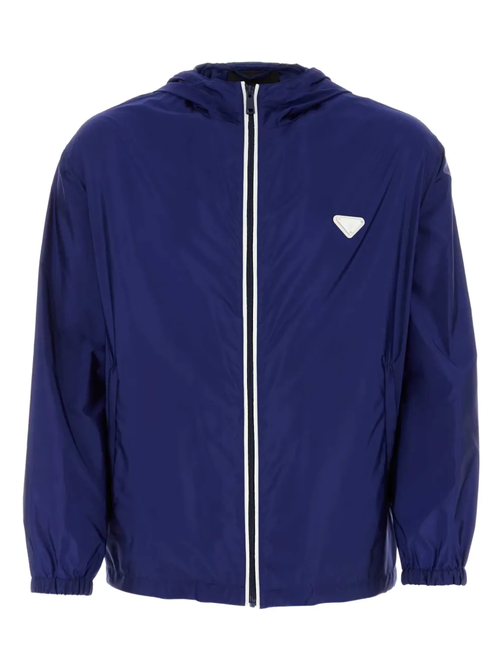 bleu nylon recyclé capuche fermeture zippée manches longues poignets élastiqués