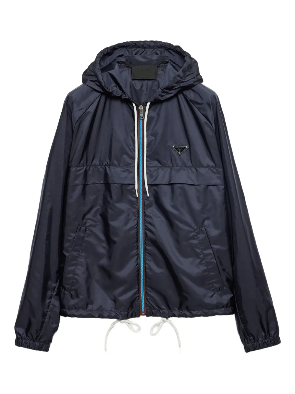 bleu marine fermeture zippée devant deux poches latérales passepoilées logo triangulaire en émail capuche à lien de resserrage
