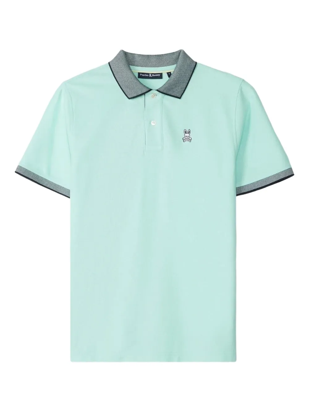 bleu aqua patte de boutonnage sur le devant col polo bords contrastants manches courtes patch logo sur la poitrine