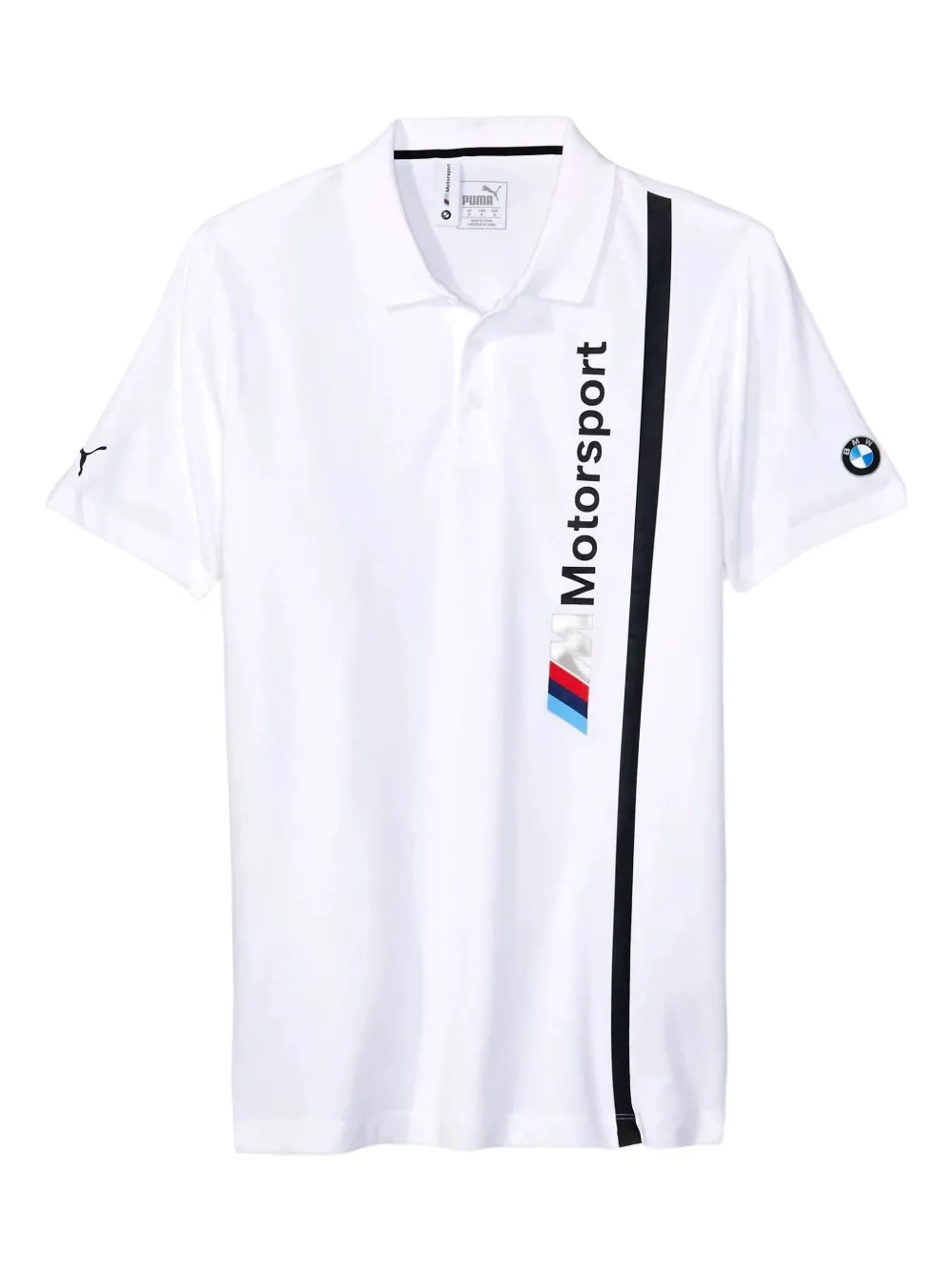 blanc logo de sport automobile rayures verticales manches courtes col polo patte de boutonnage sur le devant
