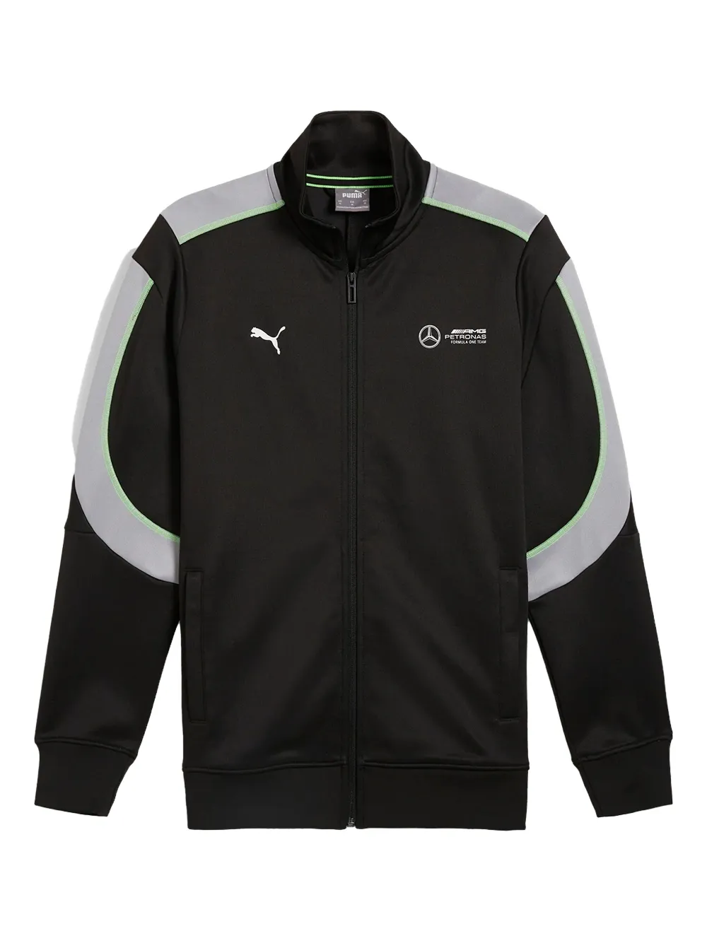 noir fermeture zippée devant col montant détails de logo design à empiècements manches longues