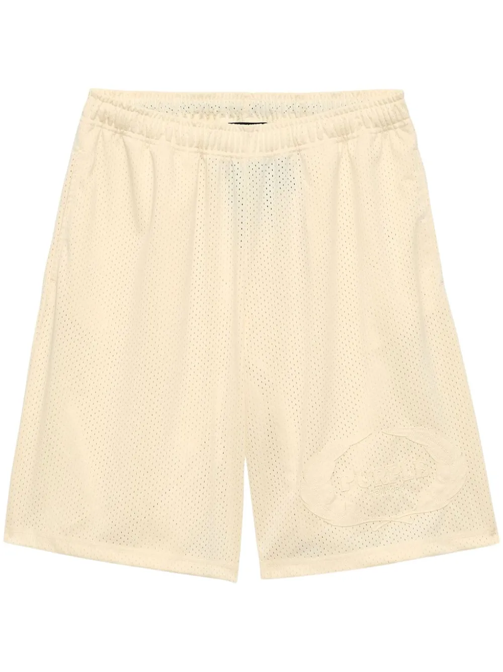 écru coton design en résille motif héraldique ceinture élastique deux poches latérales passepoilées coupe droite longueur genou