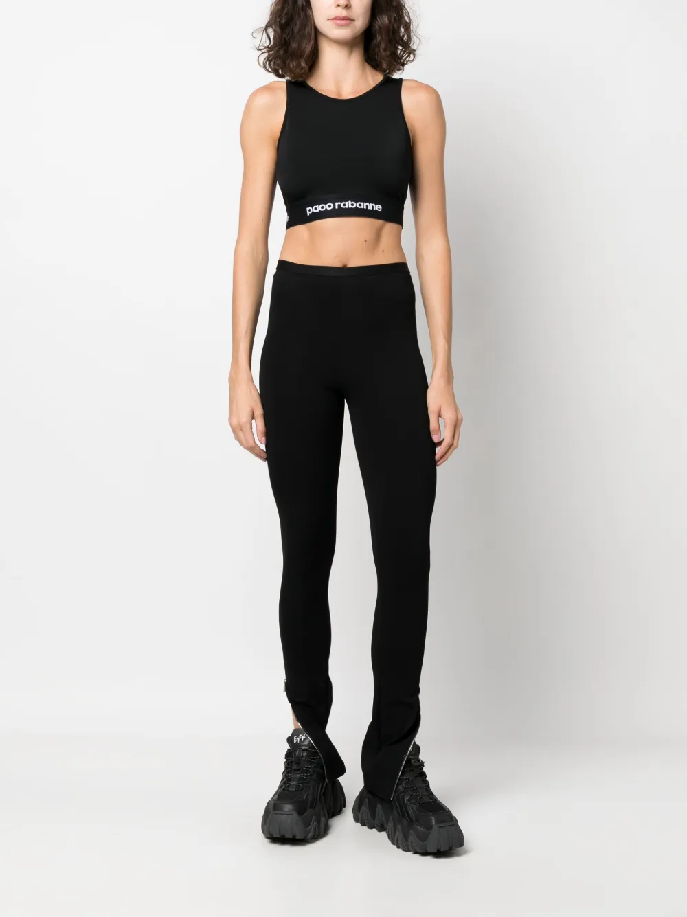 Zwart, stretch-jersey, band met logo, ronde hals, mouwloos en elastische band.