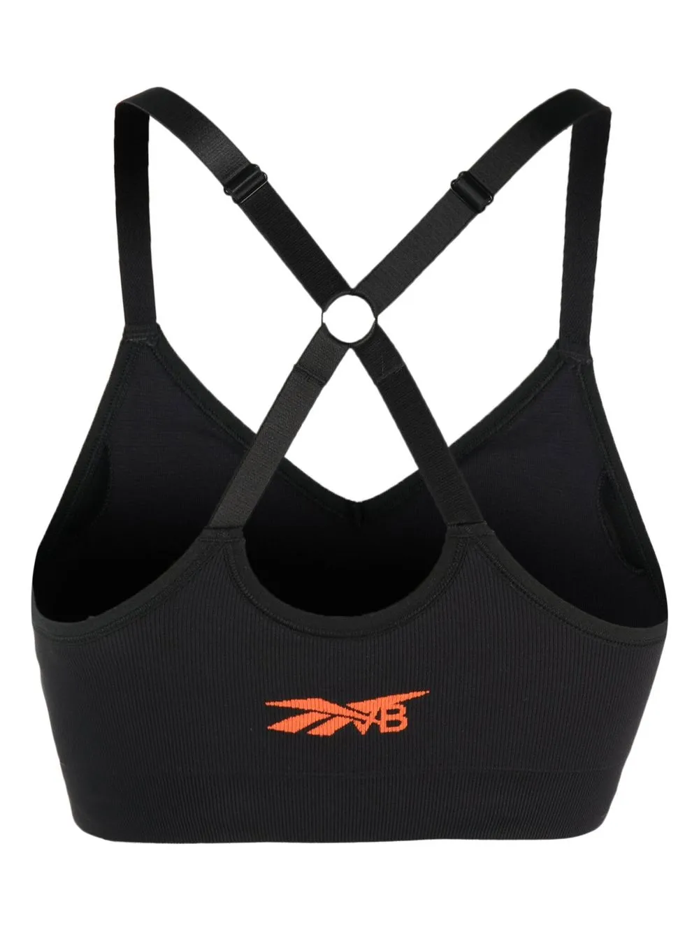 zwart oranje stretch design logoprint op de voorkant logoprint op de achterkant ronde hals verstelbare spaghettibandjes gekruiste bandjes aan de achterkant elastische band