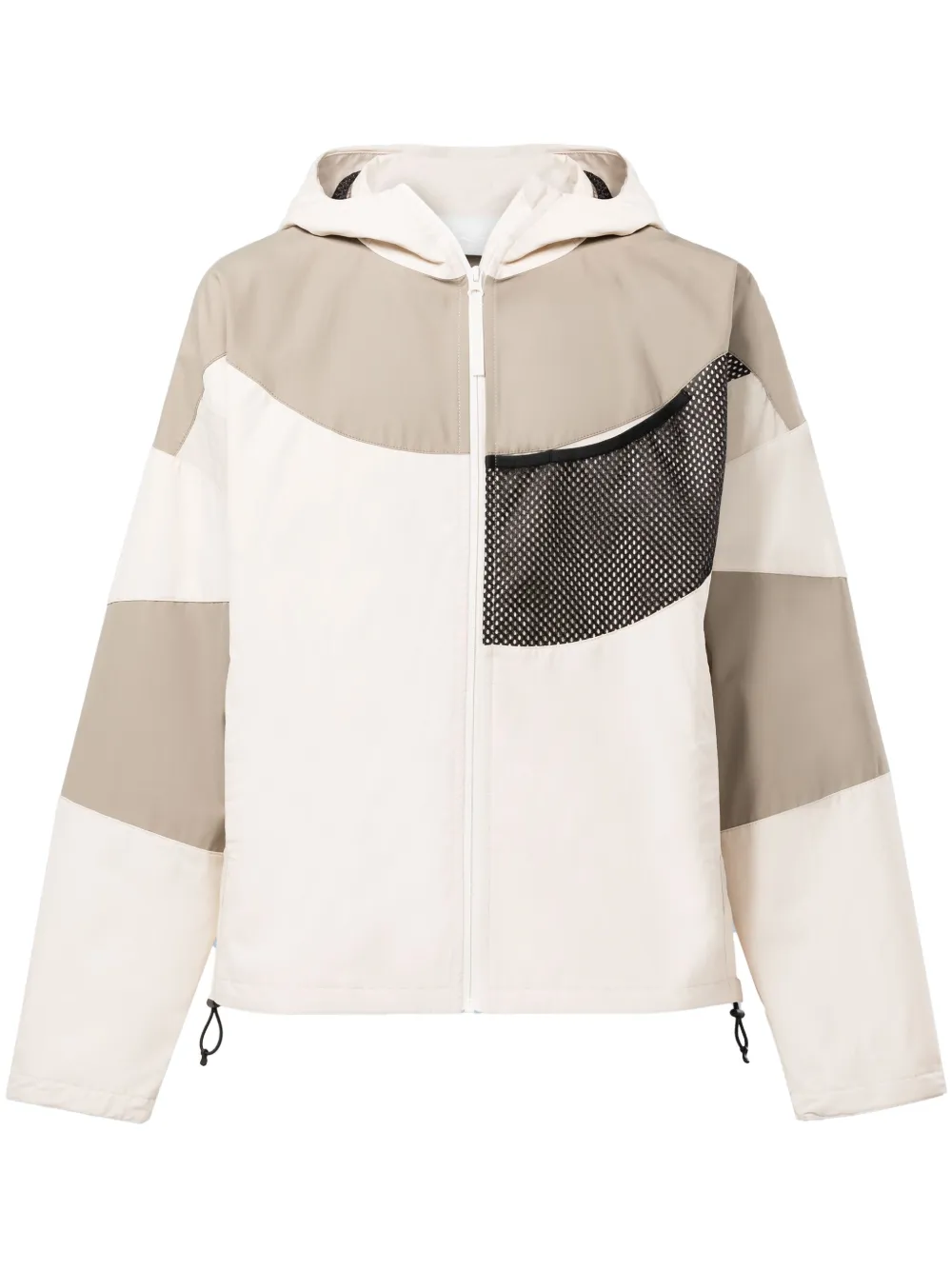 blanc beige coton mélangé design patchwork coque logo brodé à l’arrière capuche classique épaules tombantes manches longues fermeture dissimulée sur le devant poche poitrine passepoilée ourlet à lien de resserrage