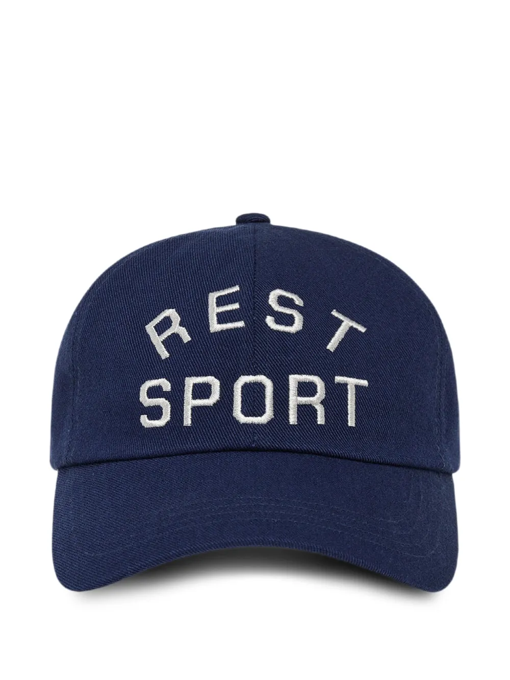 bleu marine bord incurvé logo brodé bride ajustable boucle argentée coton