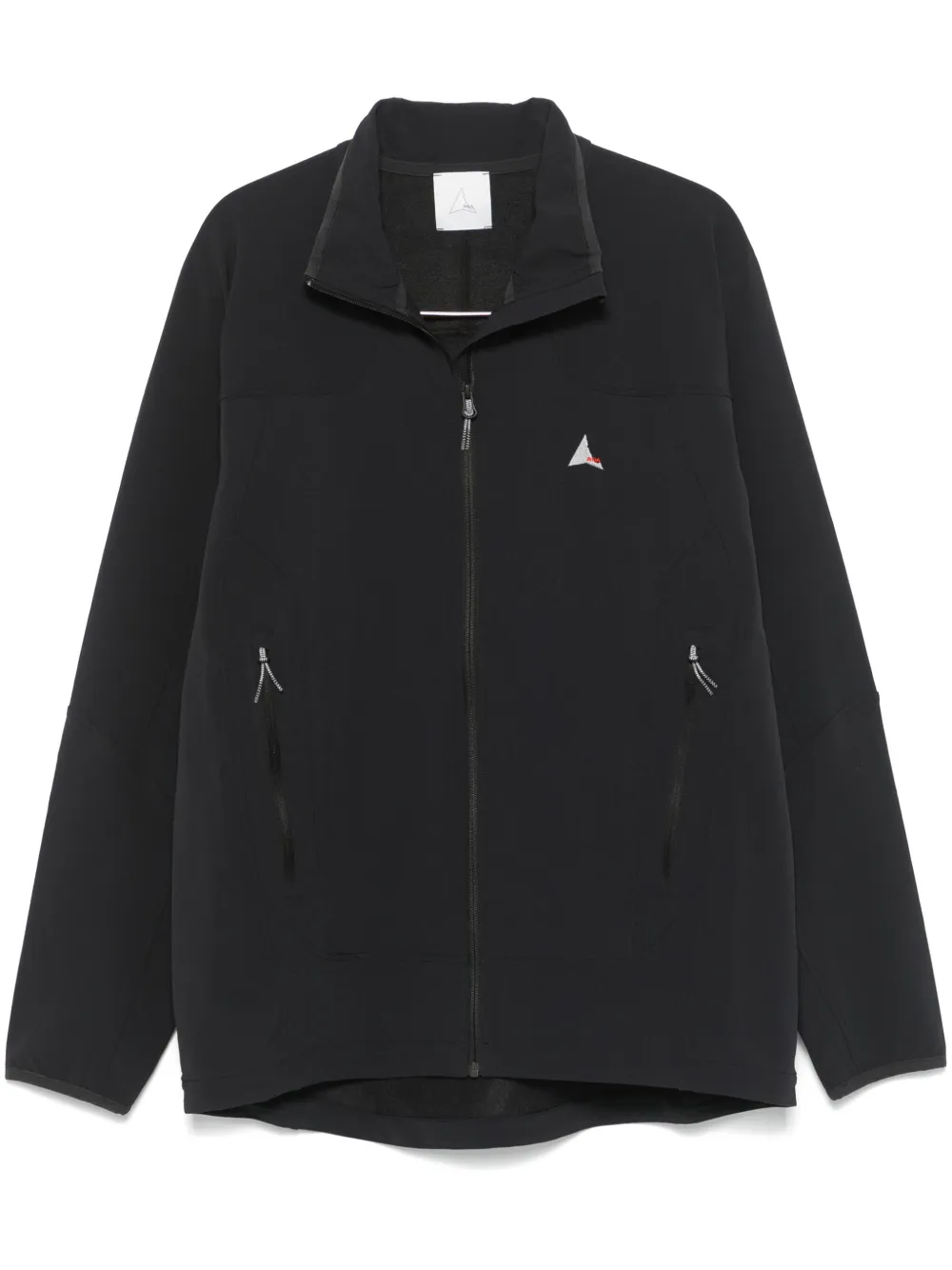 noir structure légère texture anti-déchirures fermeture zippée devant col montant manches longues à poignets élastiqués logo brodé sur la poitrine deux poches latérales zippées ourlet à lien de resserrage