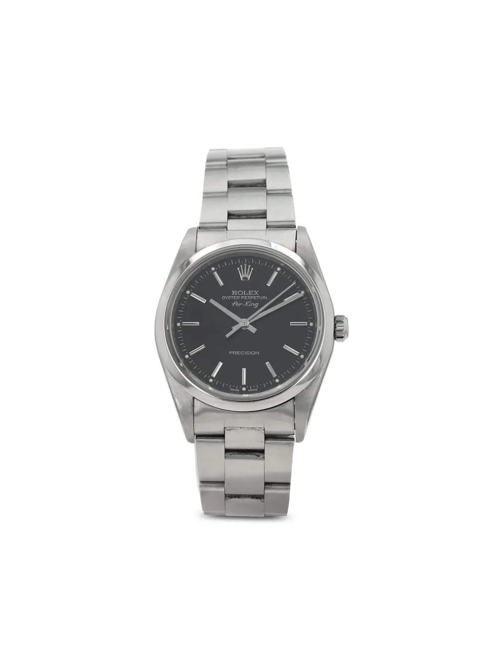 1998 pre-owned 34 mm cadran noir boîtier rond cadran secondes cadran bâton aiguilles bâton aiguille seconde boîtier en acier inoxydable bracelet Oyster Perpetual en acier inoxydable verre saphir mouvement automatique couronne vissée étanche jusqu’à 100 m/10 ATM boucle déployante Documents originaux inclus. Cet article est vendu avec un certificat d’authenticité Collector Square. Cet article bénéficie d’un an de garantie standard proposé par la boutique partenaire. État : BON. ^ Cet article pre-owned est en bon état et présente des signes d’usure minimes. ^ Il peut s’agir d’une décoloration de la matière ou du revêtement ou des rayures.