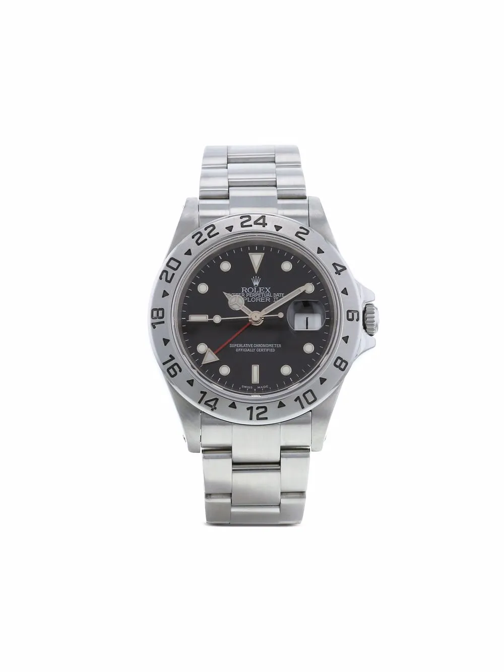 Boîtier rond en acier, fond vissé, lunette graduée en 24h en acier, couronne vissée Cadran noir Index cerclés luminescents, aiguilles Mercedes luminescentes Trotteuse centrale en acier Dateur par guichet à 3h, indication du second fuseau horaire par aiguille flèche Bracelet Oyster blindé en acier, boucle déployante en acier signée Rolex Mouvement automatique Cadran‚ boîtier et mouvement signés Vendu avec papiers d’origine Rolex, un bracelet supplémentaire en cuir Très bon état : cadran verre et aiguilles en très bon état, micro-rayures superficielles au dos du boîtier Référence : 16570 Cet article bénéficie d’un an de garantie proposé par la boutique Cet article est vendu avec un certificat d’authenticité Collector Square