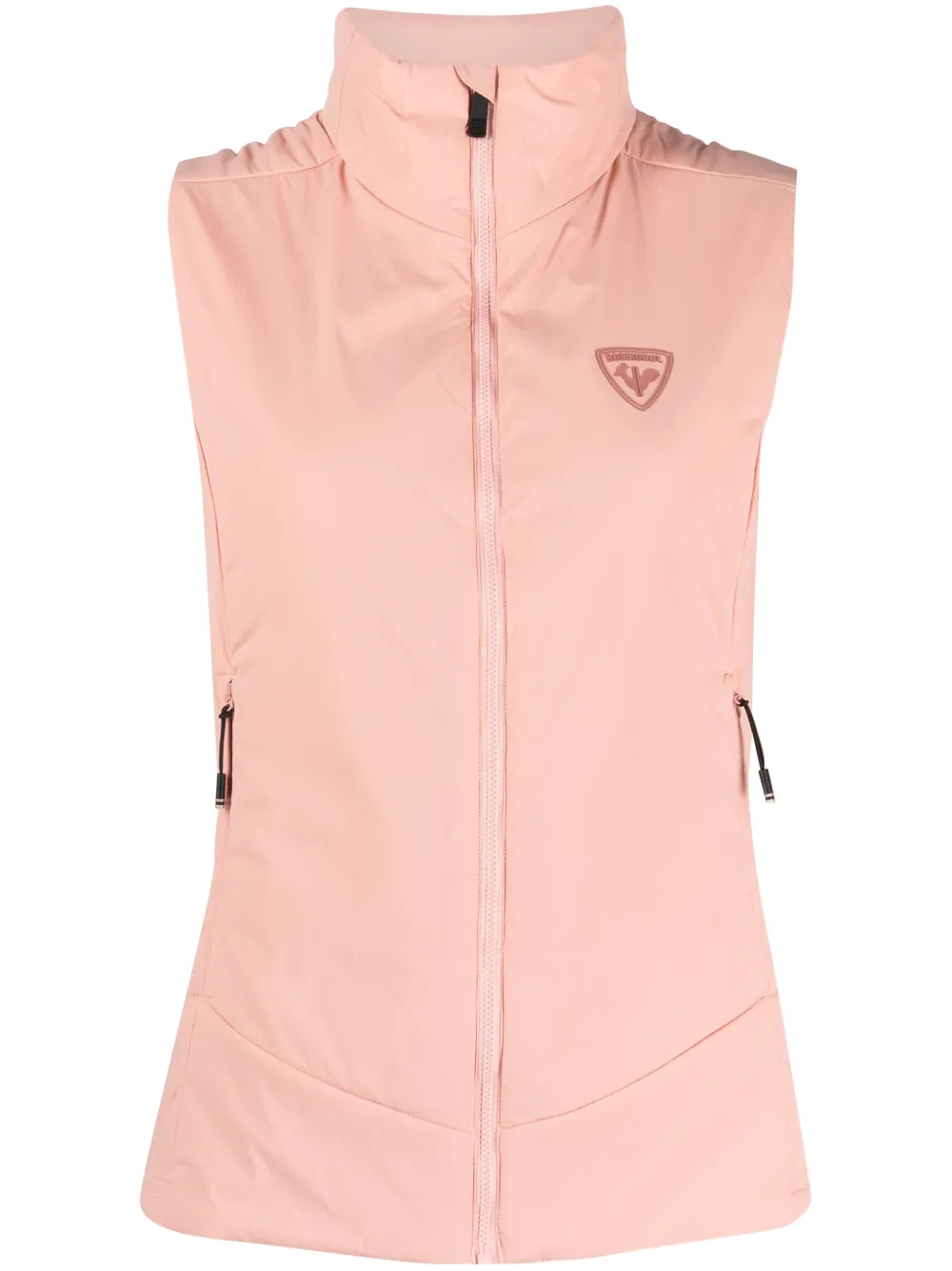 rose clair design stretch patch logo sur le devant col montant fermeture zippée devant poche latérale zippée design sans manches ourlet droit