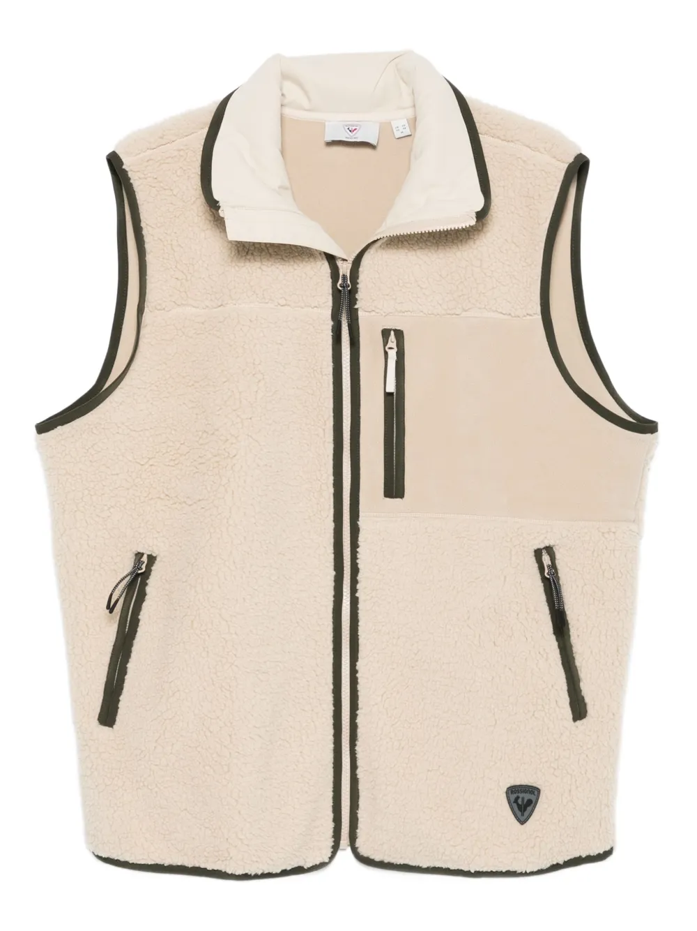 beige polaire fermeture zippée bordures vertes deux poches zippées patch logo