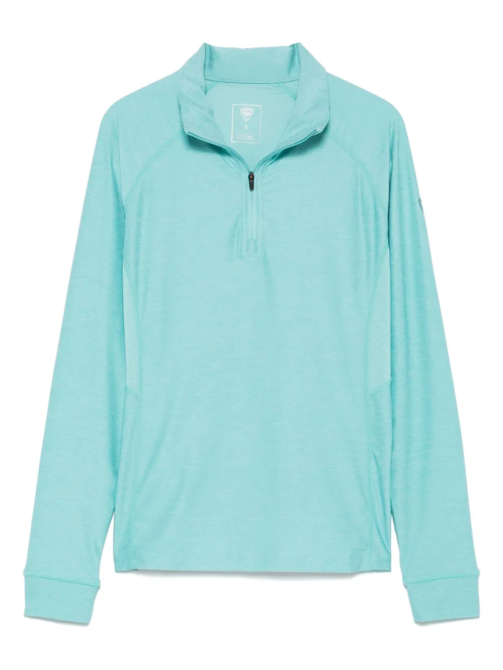 bleu-vert turquoise fermeture semi-zippée sur le devant protection UV détail de logo embossé col montant