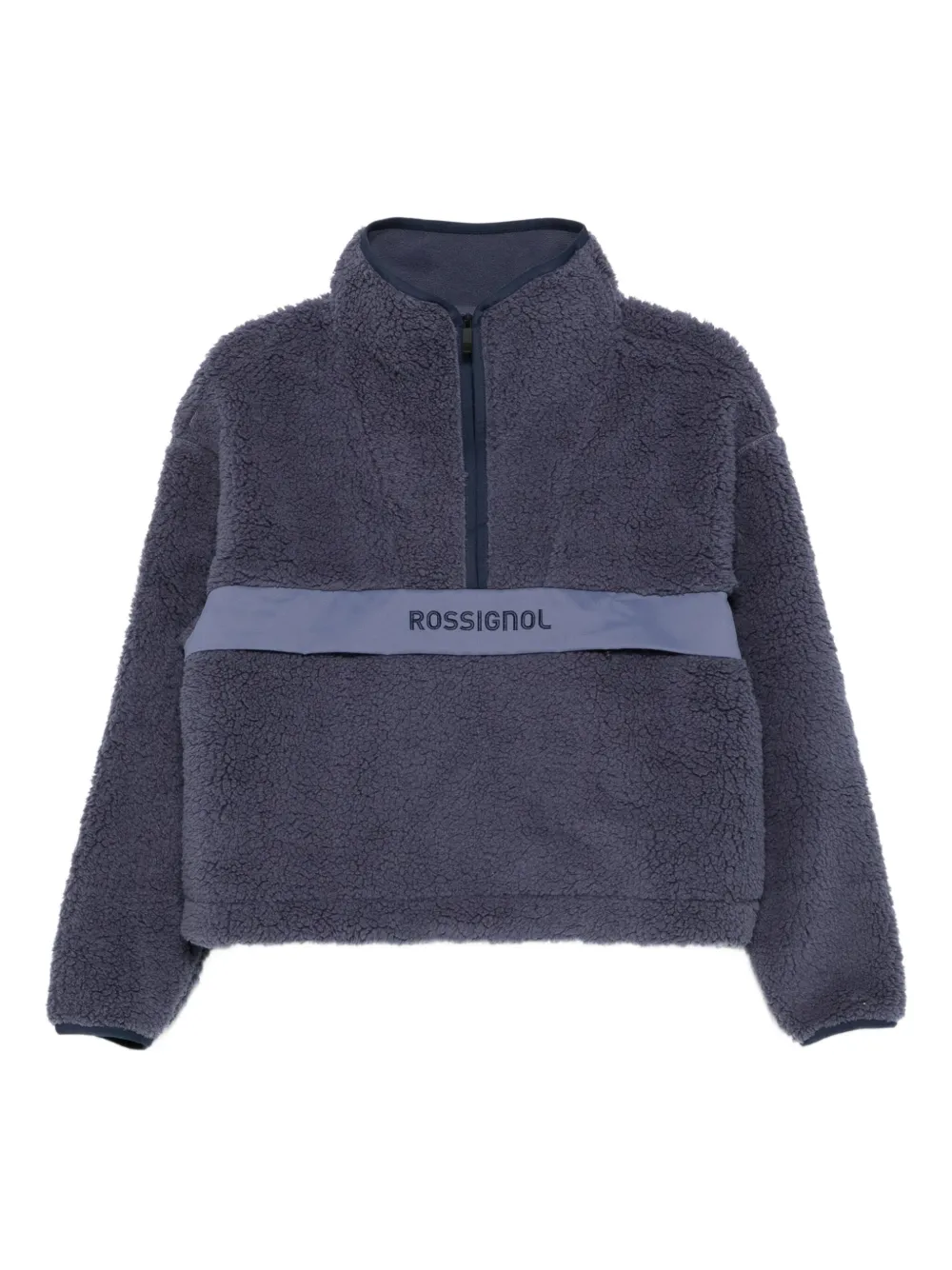 bleu nuit texture polaire col zippé manches longues poignets côtelés empiècement contrastant