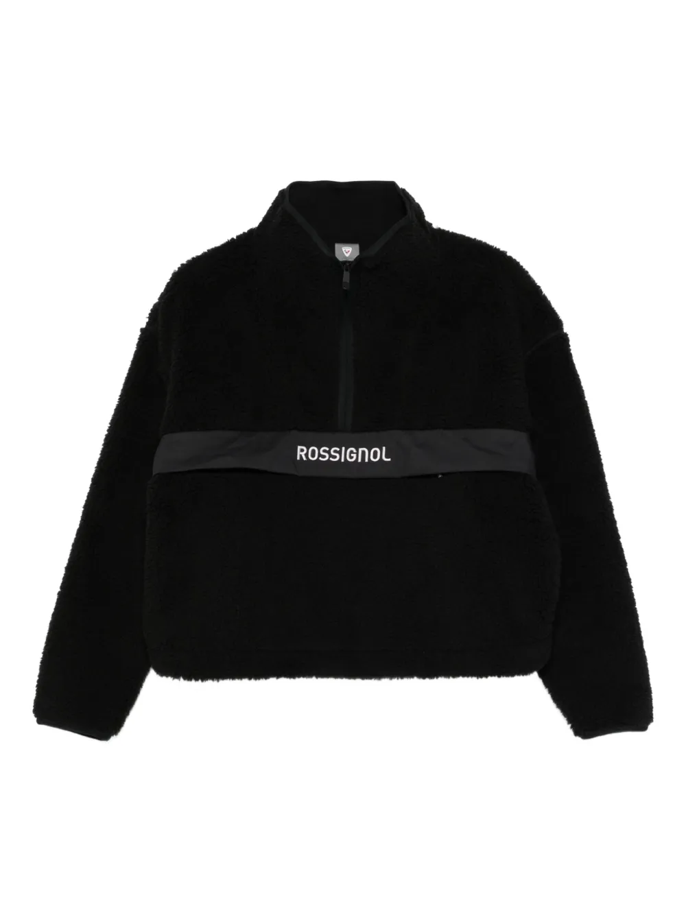 noir polaire col zippé manches longues design à empiècements détail de logo