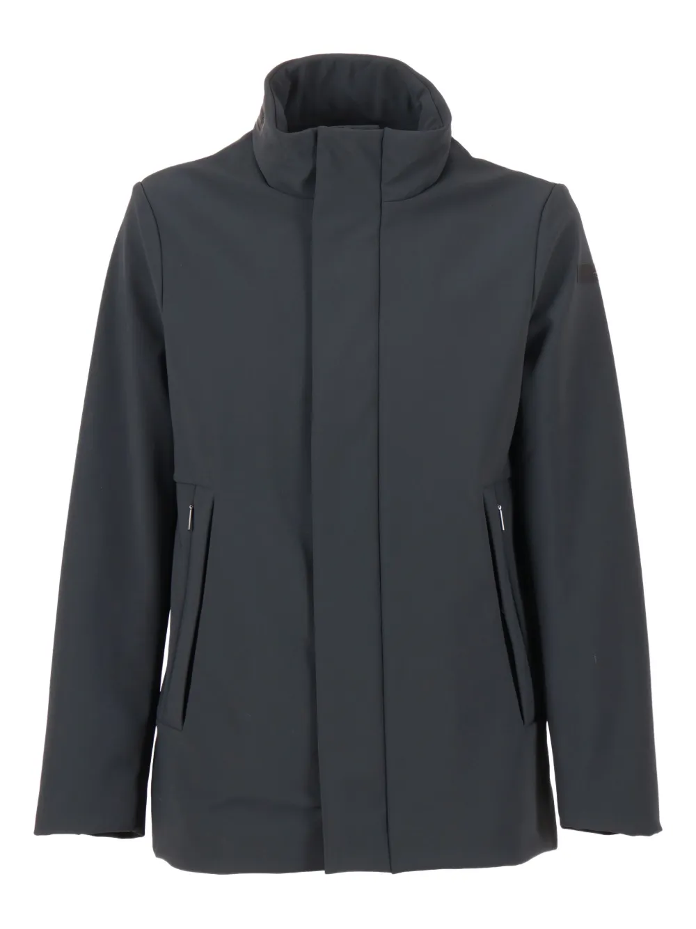gris foncé col montant fermeture zippée poches zippées capuche dissimulée manches longues