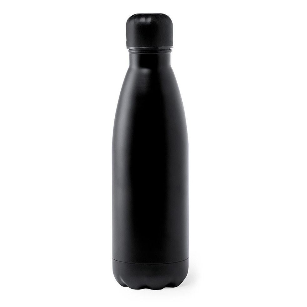 RVS waterfles/drinkfles in het zwart met veiligheid schroefdop. Afmeting: ca. D7,5 x H26 cm. Inhoud: ca. 790 ml, 79 cl. Gewicht: ca. 175 gram. Materiaal fles: RVS. Geschikt voor magnetron: nee. Geschikt voor vaatwasser: nee. Geschikt voor vriezer: nee. Wordt geleverd in een kartonnen doosje.