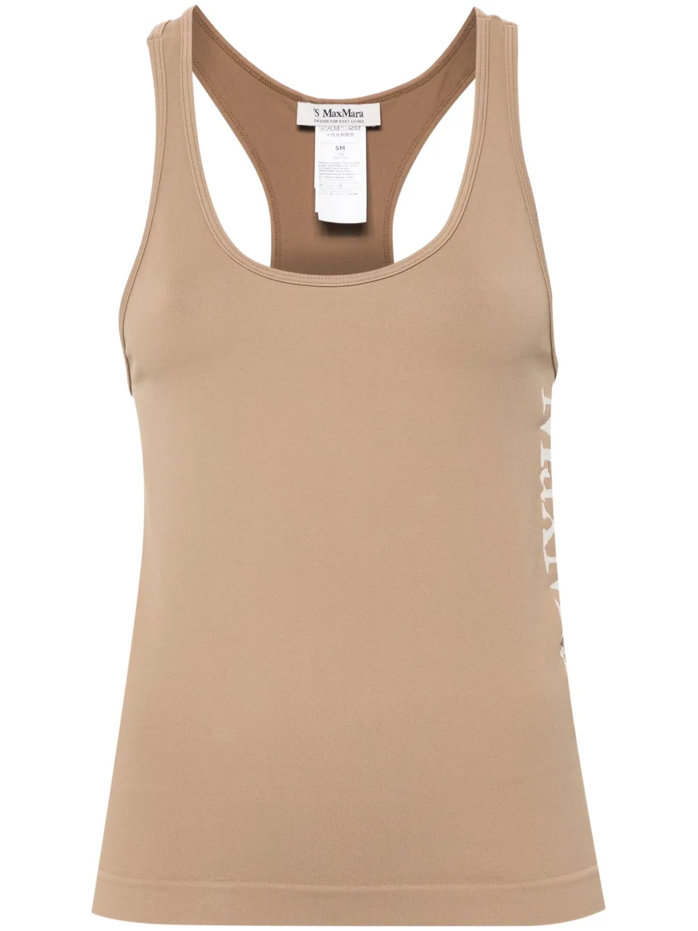 marron camel design stretch jersey technique col rond design sans manches brides à logo en jacquard dos nageur ourlet droit
