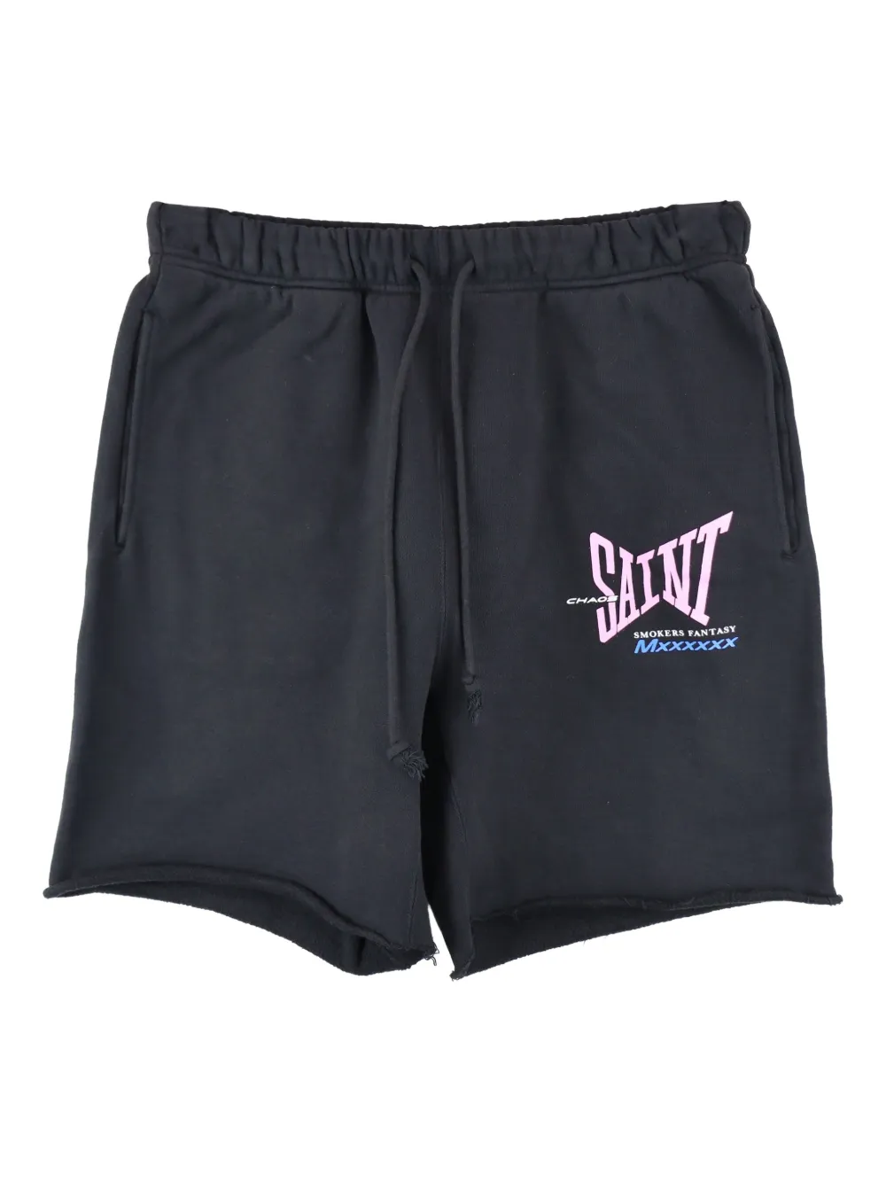noir taille élastique à lien de resserrage poches latérales fendues poche arrière plaquée logo imprimé sur la cuisse