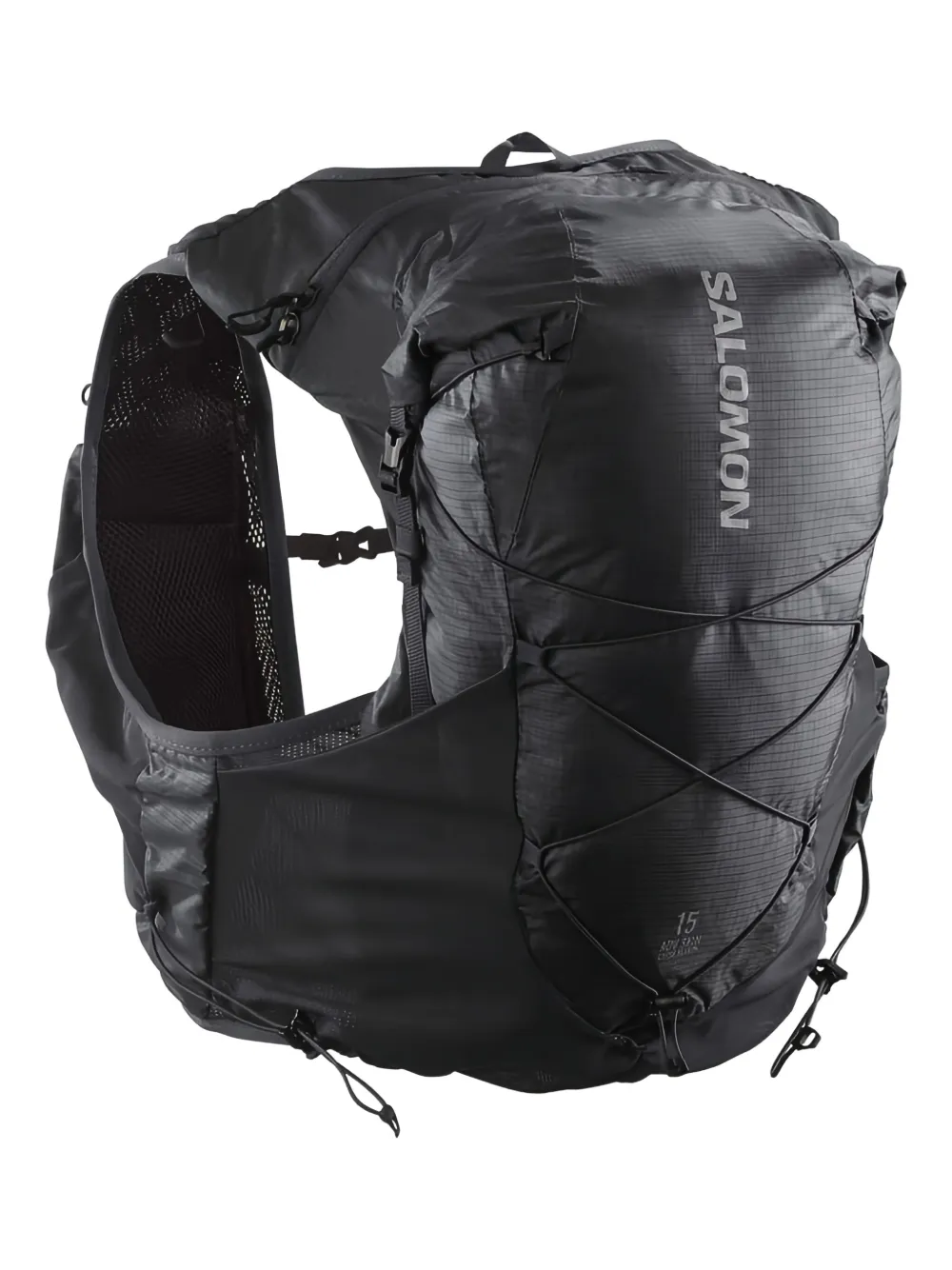 noir tissu imperméable poches multiples compartiment zippé empiècement arrière en résille brides ajustables