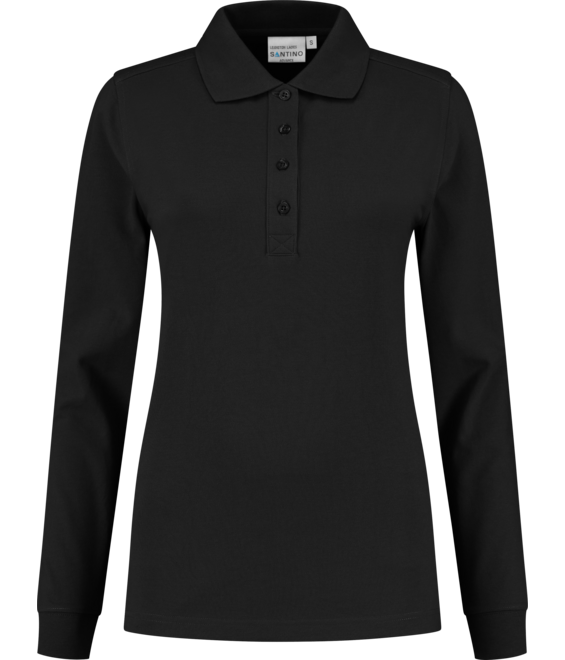 Poloshirt met lange mouw, 50% polyester / 50% lange vezel katoen, 220 gr/m², pique, ladies fit met polo-ribkraag, en 4-knoopsluiting, lange mouw met ribmanchet, 1×1 ribboord, splitjes in zijnaad, schouders voorzien van een dubbele laag stof voor extra versteviging, halve maan en anti-microbiële afwerking. (Sport grey is melange: 85% gekamd katoen / 15% viscose).