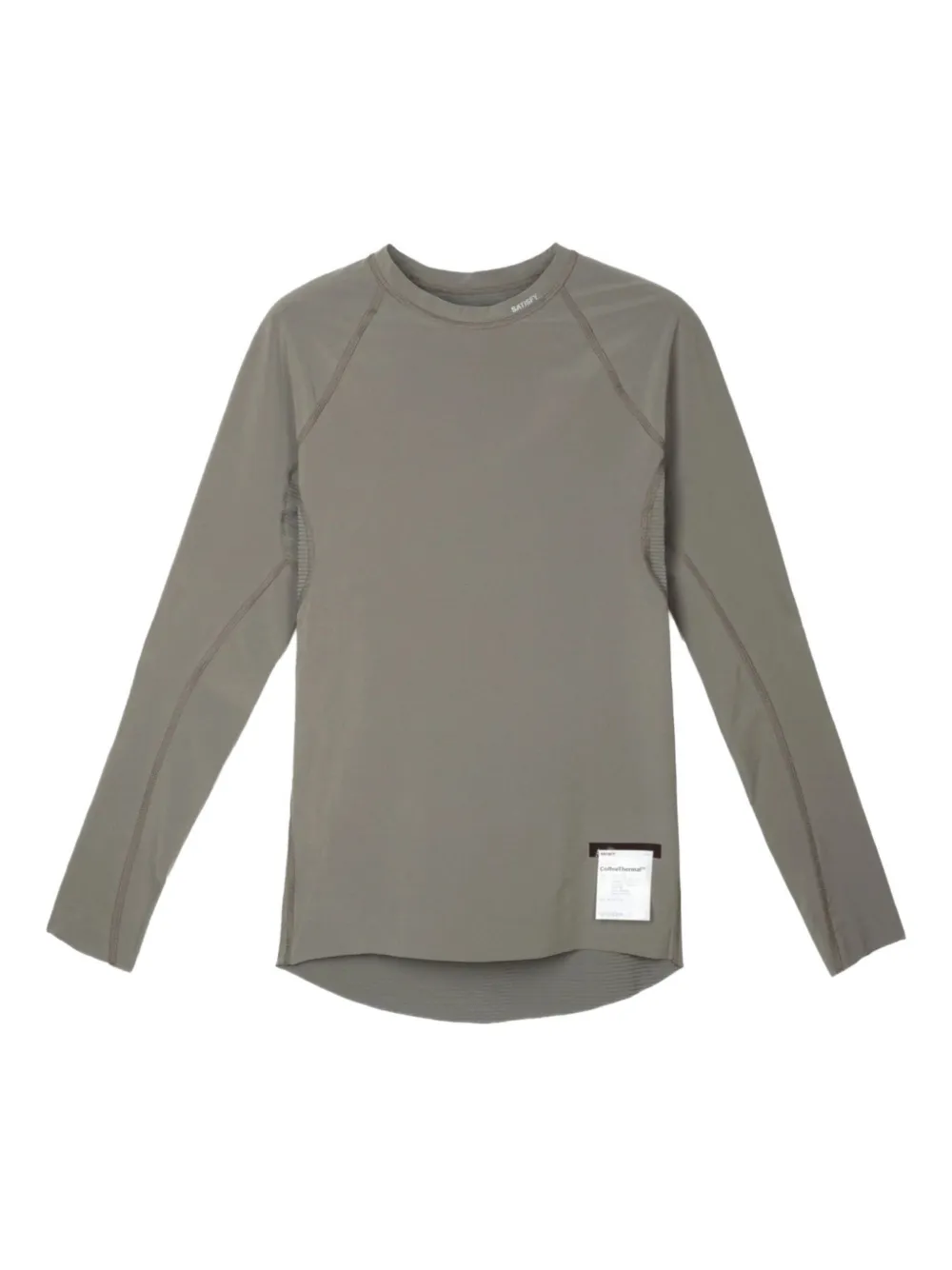 naturel foncé col rond manches longues coutures ton sur ton détail d’étiquette logo design thermique