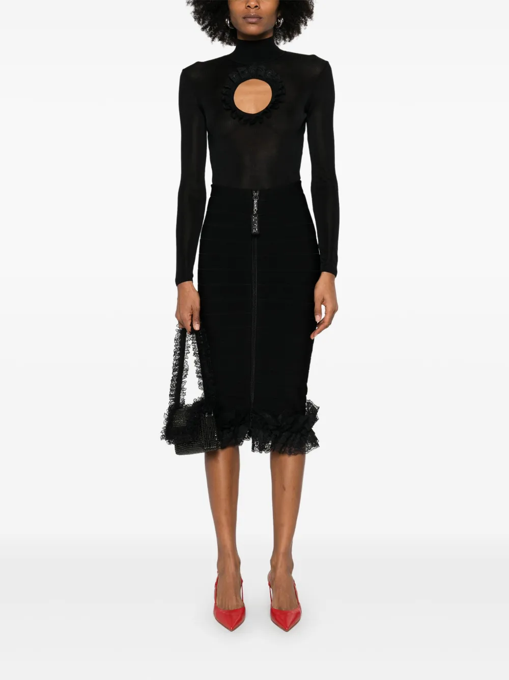 zwart drukknoopsluiting opstaande hals ruche details Reminder: dit item moet over je eigen kleding worden aangepast.