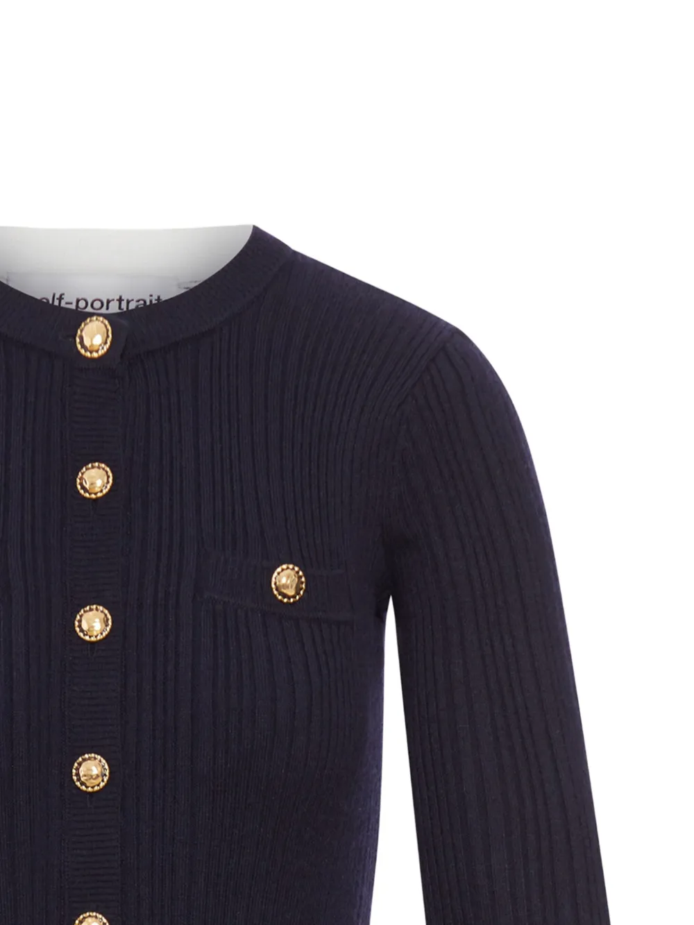 blauw ribgebreid verfraaid met gouden knopen Uitneembare riem vier opgestikte zakken contrasterende manchetten