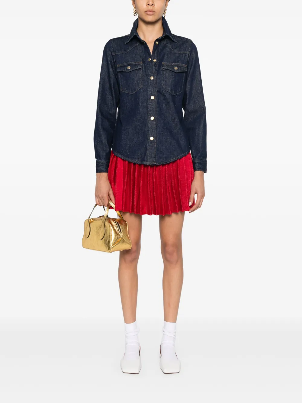 helderrood fijngebreid volledig geplooid slip-on stijl elastische tailleband ongevoerd flared afwerking