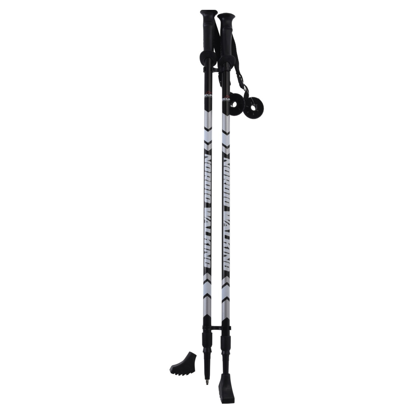 Set van 2x stuks Nordic Walking stokken zwart/zilver. Aluminium wandelstokken verstelbaar van 110 tot 140 cm. Met anti-schok systeem en een afneembare rubberen onderkant. Deze wandelstok verlicht de druk op de schouders en de armen en draagt bij aan een betere stabiliteit tijdens het wandelen.