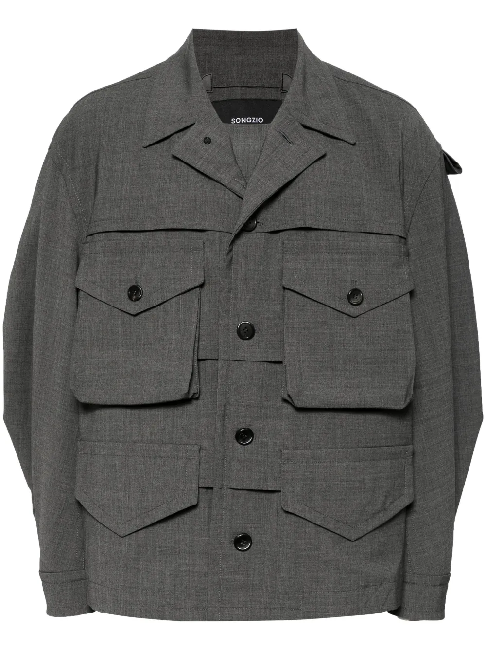 poignets boutonnés gris laine mélangée design superposé revers crantés manches longues boutonnière sur le devant deux poches poitrine à rabat poches latérales à rabat ourlet droit