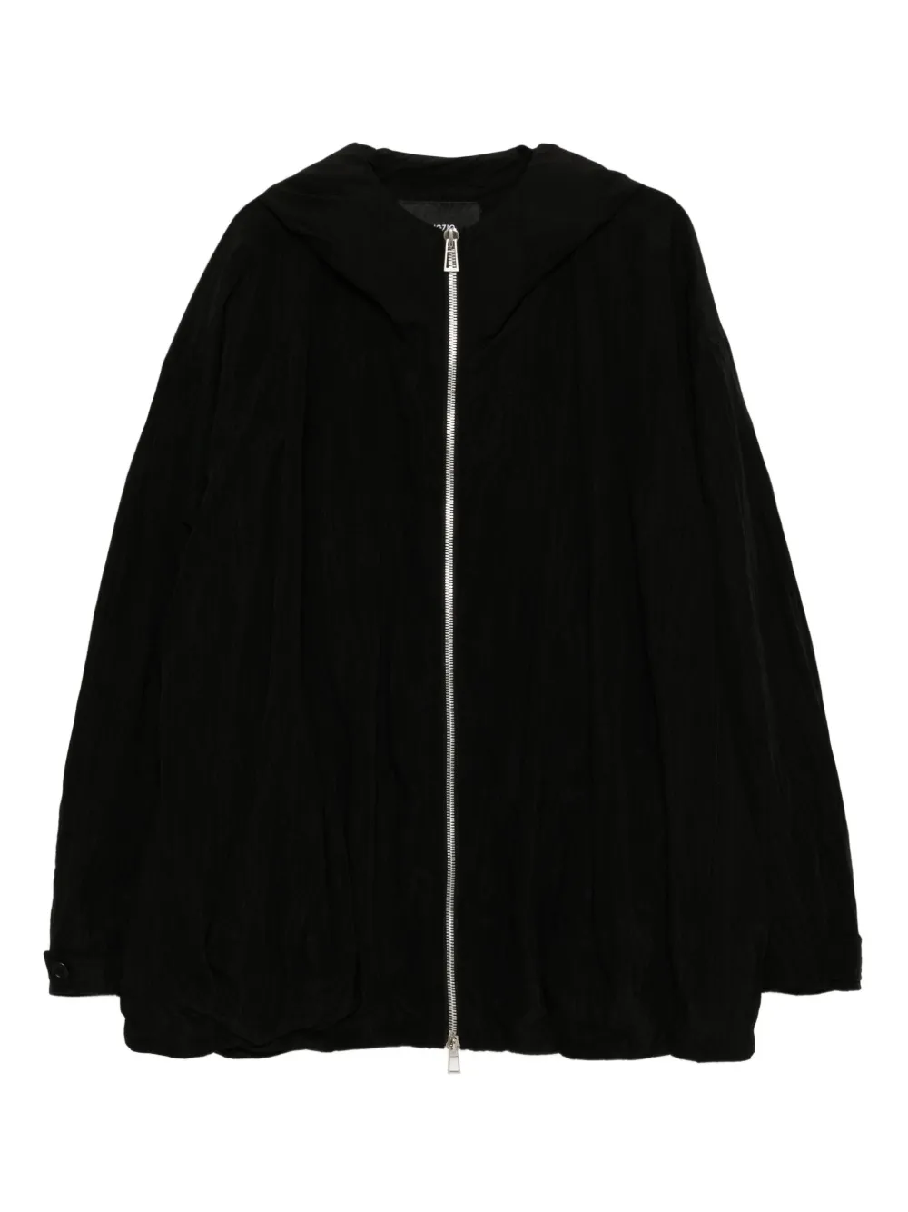 noir fermeture zippée à double sens sur le devant deux poches passepoilées latérales poignets boutonnés