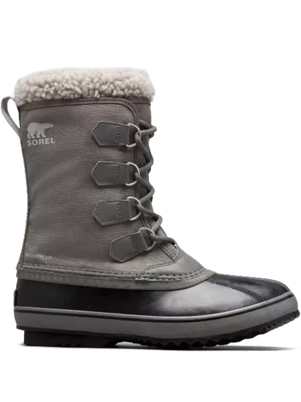 gris revers en peau lainée fermeture à lacer sur les côtés semelle en caoutchouc étanche