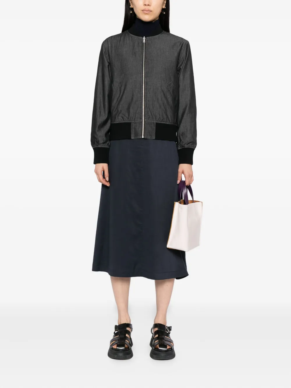 marineblauw verborgen haak- en achterritssluiting aan de achterkant twee steekzakken aan de zijkant