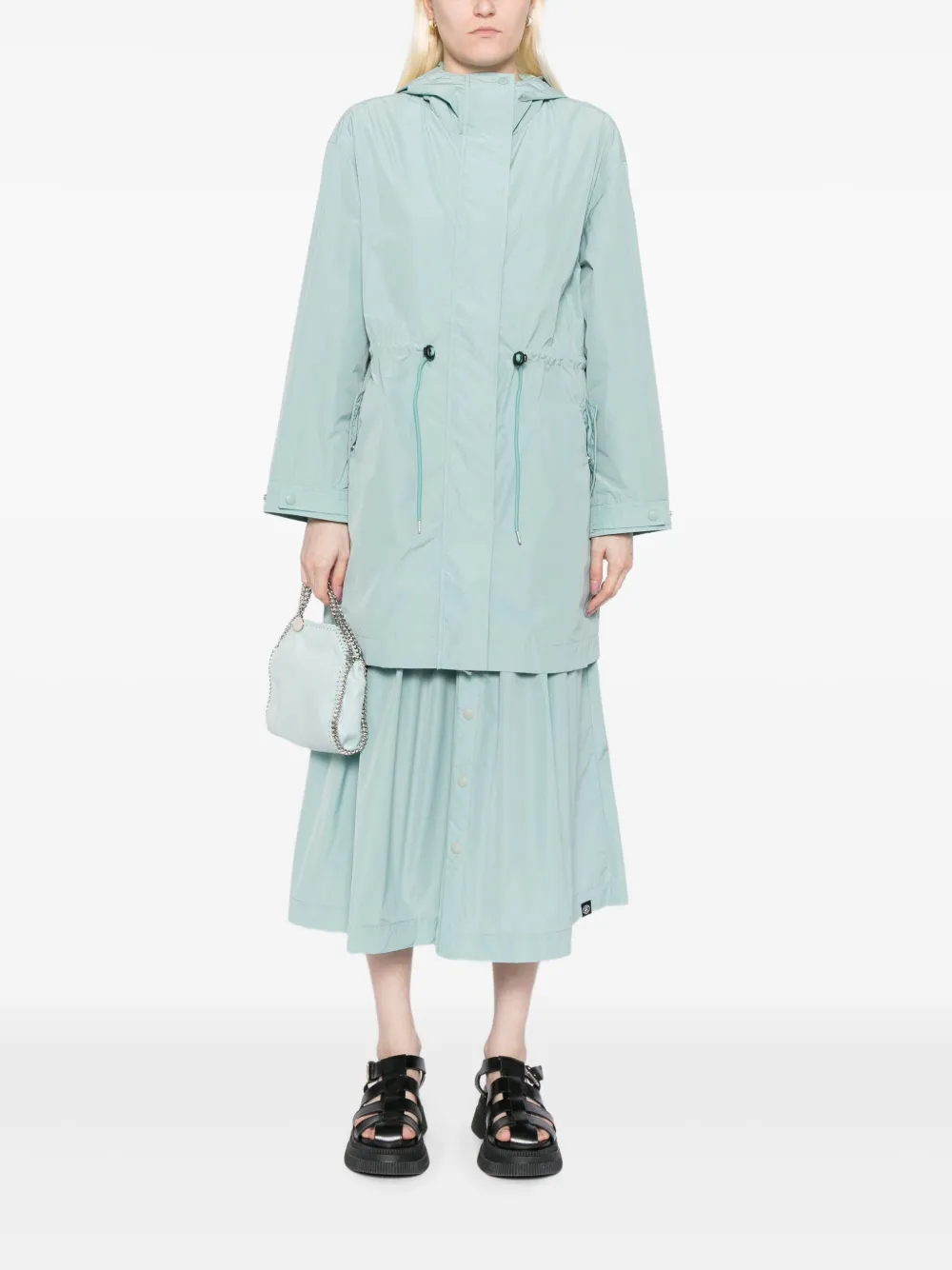 muntgroen drukknoopsluiting aan de voorkant elastische tailleband twee steekzakken aan de zijkant