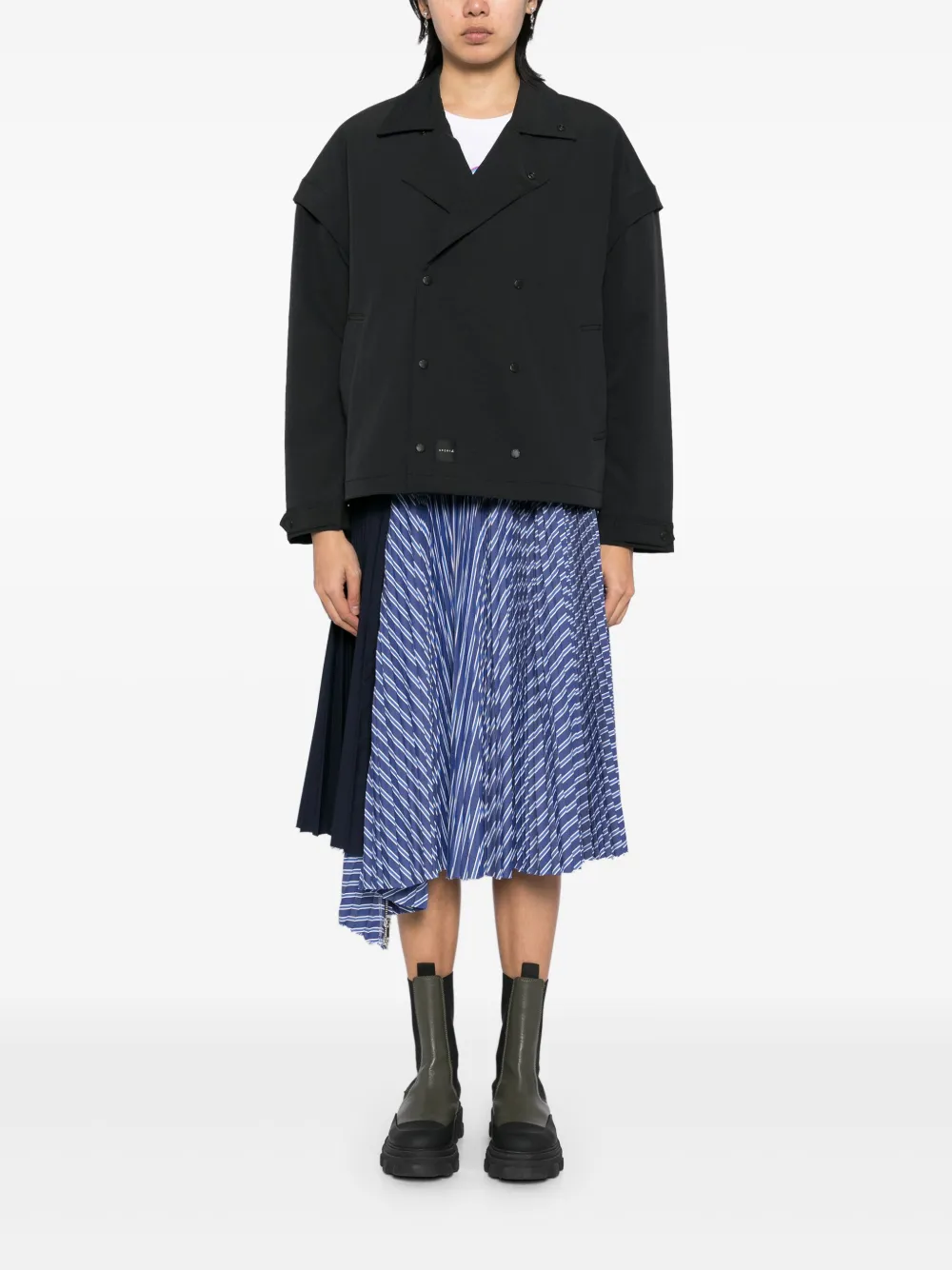 zwart sluiting met dubbele rij knopen twee paspelzakken aan de zijkant afneembare mouwen