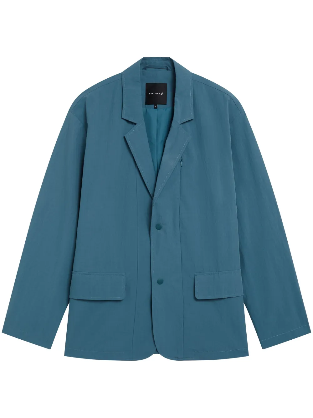 bleu sarcelle coton mélangé plaque logo à détail de fausse poche revers crantés fermeture à boutons pression sur le devant manches longues poche poitrine zippée fente arrière doublure intégrale