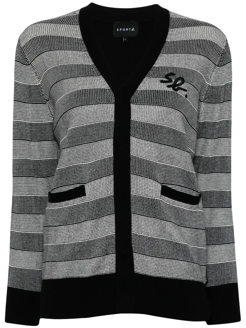 noir coton boutonnière sur le devant logo brodé sur la poitrine détails rayés col v deux poches passepoilées avant manches longues ourlet et bords nervurés